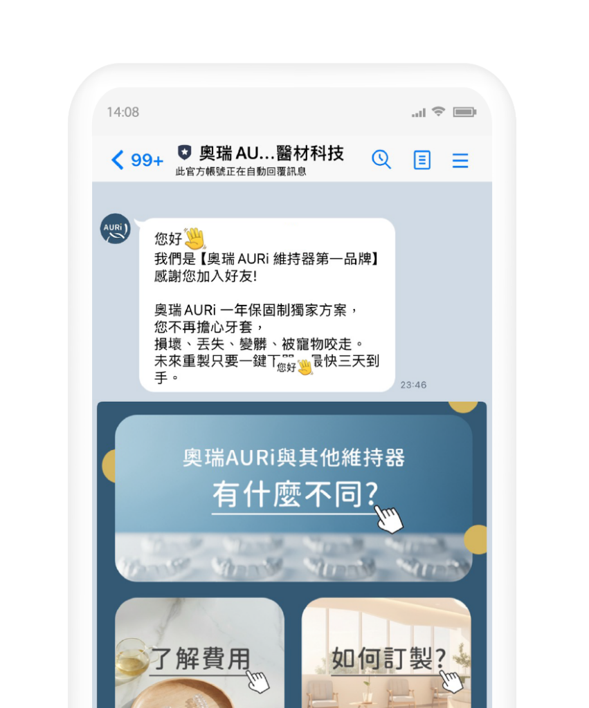About Us關於我們 關於 AURi 維持器 AURi奧瑞維持器是100%台灣團隊打造的維持器品牌。因為維持器不是只戴一、兩個月,是矯正族群們長期的夥伴、戰友。我們看到許多實際配戴的耗損、不適以及許多人的遺失經驗,理解了大多數人難以堅持的痛點,奧瑞希望解決這些痛點,輕鬆成為矯正維持的日常夥伴! 我們的理念 AURi奧瑞致力於將矯正維持痛點,轉化為更無痛入手、更方便加購的方案。與臺灣醫療科技廠攜手製成,將省下的國際物流與層層代理費用,直接回饋給消費者。但品質與專業絕不妥協!不只希望提供平價維持器,也希望透過正確使用觀念,協助使用者建立最佳的配戴與保養習慣。 以使用者為設計出發 AURi 奧瑞經過近10年的田調,深刻理解使用者日常以及透明維持器最常遇到的狀況,從磨損原因、變形造成的齒列變動程度、清潔問題影響牙齒健康…等,得知維持器在矯正後扮演的重要角色,都是奧瑞在設計維持器材質、方案前反覆見識的重點。因此,奧瑞希望降低使用者在每個環節的不安與負擔,讓維持器成為生活中穩定、可靠的戰友。 AURi 的優勢產品與服務 年度守護計畫 外出遺失或暫時找不到時,不必再焦慮或立刻重做。 奧瑞守護計畫,讓遺失維持器不再成為你的困擾。 三層耐用結構 我們選用適合日常、夜間配戴與反覆使用都耐得住的三層式結構設計。讓你使用起來更安心無虞。 方便快速的流程 不用花時間反覆溝通與等待。流程設計簡單明確,在你需要維持器的時候,更快完成、更少等待。 歡迎透過 LINE 聯絡我們! 一對一 LINE 諮詢,回覆清楚、不用反覆說明可直接傳送需求內容,協助快速確認適合的方案支援文字與圖片傳送,溝通更直覺由專人協助回覆,提供實際可行的建議 前往聯絡